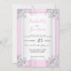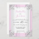 Elegant Pink & White Satin with Silver Ornate Invitation