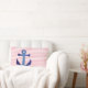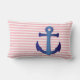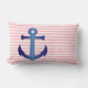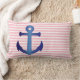 Elegant Pink White Stripes Pattern Blue Anchor Lumbar Cushion