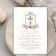 Elegant Pink Wildflower Rose Cross Crest Baptism Invitation