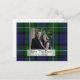 Elegant photo wedding save the date post card done in the traditional Forbes green and blue tartan plaid. A place for your photograph, in the middle of the plaid pattern, with a pewter looking plaque below, with text in green. All text, on the front plaque and back side of the card, is fully customisable to read what you want.