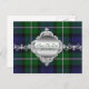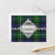 Elegant wedding save the date post card done in the traditional Forbes green and blue tartan plaid. Lovely graphics of an ornate silver tone jewel band and plaque, with green custom text, decorates the front of the card. All text, on the front plaque and back side of the card, is fully customisable to read what you want.