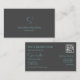Elegant Plain Grey Teal with Monogram and QR-Code Business Card