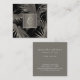 Make a lasting impression with a sophisticated square business card featuring a pattern of palm fronds in platinum over a black background. A matching square frame surrounds your monogram or company logo elegantly. The reverse side of the card is a matching solid platinum colour.