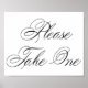 This beautiful and timeless horizontal "Please Take One" favour or program table signage adds a simple elegance to any classic wedding reception, shower or party motif. The luxurious script design features a whimsical and romantic modern black calligraphy lettering. The lovely font with a customisable background colour makes it easy to fit any theme. For other colours or matching products, please visit the JustFharryn Zazzle store, or contact the designer, c/o Fharryn@yahoo.com All rights reserved. #zazzlemade