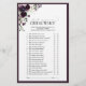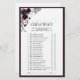 Modern, elegant bridal shower game "Guess Who" featuring a floral bouquet of soft, watercolor roses in shades of plum purple, with lush green eucalyptus botanical leaves, and bordered in plum purple. Personalise your questions in black, accented with beautiful modern hand lettered calligraphy. Part of a co-ordinated suite. View suite here: https://www.zazzle.com/collections/plum_purple_watercolor_floral_bridal_shower-119250449992466290 Contact designer for matching products. Copyright Anastasia Surridge for Elegant Invites, all rights reserved.