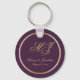 Elegant Plum Purple Gold Monogram Script Wedding Key Ring