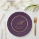 Elegant Plum Purple Gold Monogram Script Wedding Paper Plate
