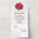 Celebrate your winter wedding with this elegant all-in-one poinsettia wedding invitation, featuring a festive red floral design that beautifully captures the warmth of the holiday season. This convenient and stylish invitation includes an integrated RSVP postcard, making it easy for guests to reply while keeping your stationery suite cohesive and refined.