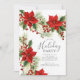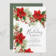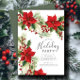 Modern elegance holiday party featuring a beautiful poinsettia and holly berry garland set on a white background.