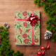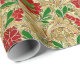 Add a touch of timeless holiday elegance with this poinsettia-themed wrapping paper, showcasing a luxurious red, gold, and green design. Perfect for creating beautifully wrapped gifts with a festive flourish.