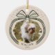 Elegant Polka Dot Christmas Bow Photo Keepsake Ceramic Ornament