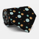 Beautiful neck tie with elegant polka dots in light blue and golden colours on black background.