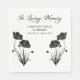 Luncheon napkins for a funeral featuring beautiful silhouettes of poppies against a white background. In loving memory is written across the paper napkin in a lovely script. Add your loved one's name and years living.