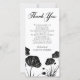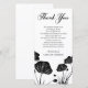 Black and white thank you card for a memorial service featuring the silhouettes of poppies. Thank You is written in an elegant script. Add your own thank you note.
