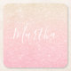 Elegant pretty girly gradient rose gold glitter square paper coaster