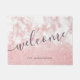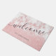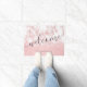 Gorgeous personalized doormat design with gradient faux pink rose gold glitter, marble texture and elegant calligraphy font.
