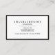 Simple and professional business cards featuring your name and title or occupation in the lower right corner, framed by a chic black border. Add your contact information to the reverse side.
