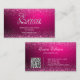Modern and professional pink with silver glitter business card personalised with your name in an elegant script font, and a customisable QR code that links to your website on the back.