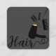 This card is designed to help hair stylists easily and quickly schedule appointments with their clients. It features a modern and stylish design with a Grey and black colour scheme. The card also includes space for the client's name, appointment date, and contact information.