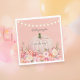 Shower the guests at the baby shower party with these matching elegant, floral pumpkin designs. Blush pink pumpkin with pink, coral and yellow flowers underneath, pink ribbon, and string lights above on a blush pink background.
