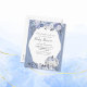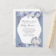 Enjoy this elegant, autumn, floral baby shower for a baby girl or boy. Blues, purples, and white florals with a dusty blue background. Pumpkin sits on lower right. Templates provided on both front and back. Return address template on back with another pumpkin and flowers under pumpkin.