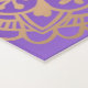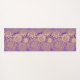 A beautiful yoga or exercise mat featuring an elegant purple and gold toned floral mandala pattern.