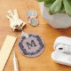 An elegant design in purple and silver frames a customisable monogram.