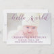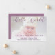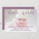 Beautiful elegant purple mauve glitter script Baby Birth Photo Announcement Card. Elke Clarke Designs ©. More styles available in our shop. Glitter (printed photo effect) typography overlay with the words "hello world" in a handwriting script font. Elegant and versatile design you can customise for both a baby girl and a baby boy new baby announcement. Printed purple glitter photo effect on the back can be changed upon request.