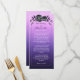 Elegant dark fall floral menu card has definite gothic vibes. An ombre amethyst purple background and a second border of candle light white surrounds your menu selection of 3 entrees and appetizer. The menu back features a monogram of the of the couple initials surrounded by the wedding date written is script followed by "Always" Bespoke elegance at its romantic best for your reception tables.