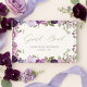 This elegant and classic guest book is a beautiful way to capture memories from your special day. It features a stunning hand-painted watercolor floral design with an intricate wreath of purple, lavender, violet, and mauve flowers. The front cover is personalised with the couple's names and wedding date in an elegant script font. This guest book is perfect for guests to sign, leave well wishes, and share advice. It is a lovely keepsake from your wedding day and can also be used for an engagement party or bridal shower. The refined design adds a touch of sophistication to any wedding theme.