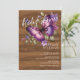 Celebrate love and friendship with this elegant purple butterfly bridal shower invitation, featuring stunning floral accents and a rustic wood background. The design blends modern script calligraphy with natural textures, creating a warm and feminine atmosphere perfect for a spring or garden-inspired celebration. Easily customize the bride’s name, event details, and RSVP information. Ideal for bridal showers, brunches, and floral-themed parties that exude grace and sophistication.