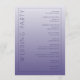 This elegant wedding program features a vertical layout with a gradient lavender background, transitioning from light to dark shades. The design is minimalistic, focusing on clean typography with a mix of serif and sans-serif fonts that create a sophisticated balance. A bold "WELCOME" text runs vertically along the left side, while the right side lists ceremony elements in an organized manner. Customizable placeholders for names and dates are included at the bottom, making it perfect for personalization. The overall mood is serene and formal, ideal for a chic and modern wedding celebration.