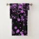 Add a touch of abstract elegance to the bathroom with this towel set, which features purple confetti fading into a black background!