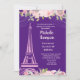 Elegant Purple Eiffel Tower Paris Birthday Invitation