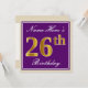 Elegant, Purple, Faux Gold 26th Birthday + Name Invitation