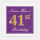 Elegant Purple, Faux Gold 41st Birthday + Name Napkin