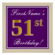 Elegant, Purple, Faux Gold 51st Birthday + Name Poster