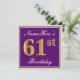 Elegant, Purple, Faux Gold 61st Birthday + Name Invitation