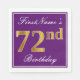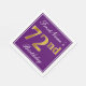 This simple and elegant paper napkin design features a message like "FirstName’s 72nd Birthday" (with the "72nd" having a faux gold-like colouring) within a purple-coloured square area featuring a simple border outline. The name is in a white-coloured script-like text, and can be personalised. Napkins like these could perhaps be used at a birthday party for somebody who is celebrating their seventy second birthday. [~Z0000140]