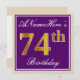 Elegant, Purple, Faux Gold 74th Birthday + Name Invitation