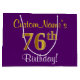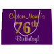 Elegant, Purple, Faux Gold 76th Birthday + Name Large Gift Bag