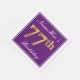 This simple and elegant paper napkin design features a message like "NameHere’s 77th Birthday" (with the "77th" having a faux gold-like colouring) within a purple-coloured square area featuring a simple border outline. The name is in a white-coloured script-like text, and can be customised. Napkins like these could perhaps be used at a birthday party for somebody who is celebrating their seventy seventh birthday. [~Z0000140]