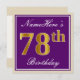 Elegant, Purple, Faux Gold 78th Birthday + Name Invitation