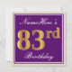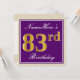 Elegant, Purple, Faux Gold 83rd Birthday + Name Invitation