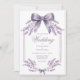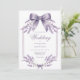 Elegant delicate purple frame and coordinating fonts. Purple wisteria watercolor flowers accent this lovely wedding invitation. We’ve added purple bows on the top and bottom for extra beauty. Perfect for any season. If you want romance, this invitation is perfect. So chic and sophisticated.. This lovely invitation. Such an elegant wedding invitation. I’ve enjoyed creating this design for you. Zazzle guarantees 100% customer service and satisfaction.