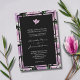 Elegant shades of purple, lavender and white, these magnolia floral border invitations feature your wedding details in chic white lettering against a black background. MATCHING items in our collection.