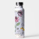 This Elegant Purple Floral Queen Bee and Crown Water Bottle features hand-drawn illustrations of a queen bee, her royal gold crown, exotic flowers and wildflowers with a customisable vintage gold scroll.