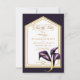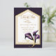 Our beautiful modern yet elegant calligraphy script, Save the Date, enclosure card will be the perfect addition for any fall or winter wedding. Details include a dark purple background with purple calla lilies adorning a gold frame. Use our editing tool to change the text for your event. See our entire Elegant Calla Lily Collection and shop this suite.