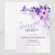 Celebrate a milestone birthday in style with this elegant purple floral Sweet Sixteen invitation. Featuring a delicate watercolor floral design with a soft lavender and lilac colour palette, this invitation is perfect for a sophisticated and feminine birthday celebration. Personalise the details to create a unique and beautiful invitation that sets the tone for your party.