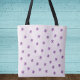 Carry your essentials in style with this beautiful tote bag featuring a large purple watercolor flower surrounded by delicate blossoms. Perfect for shopping, beach trips, or everyday errands, this eye-catching accessory is both functional and fashionable—grab yours today and add a pop of floral charm to any outfit!